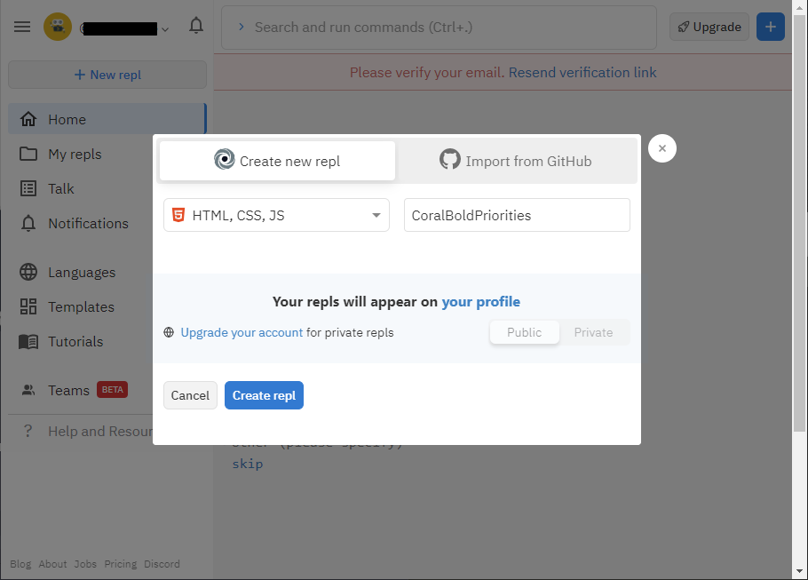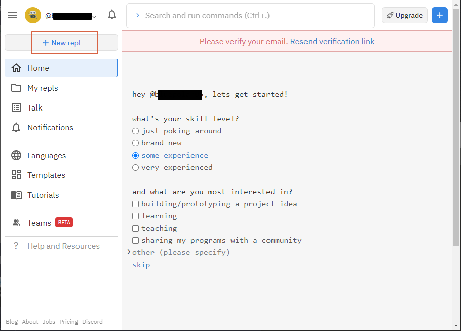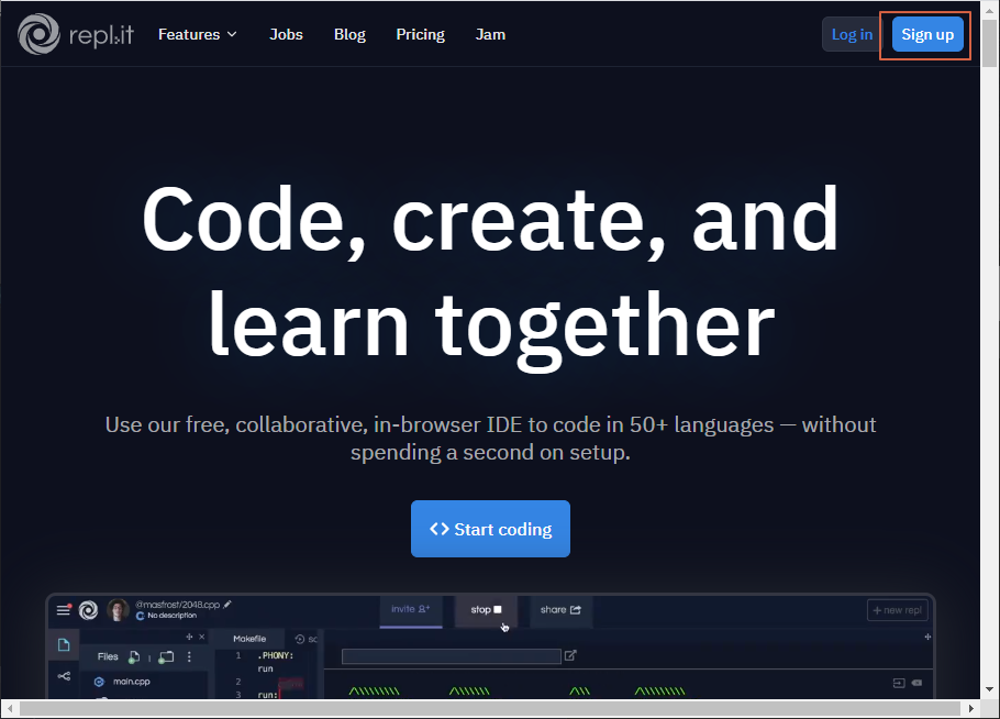 1.1.repl.it/ 사이트 접속 후 회원 가입